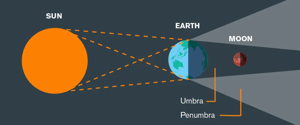 Un eclipse lunar ocurre cuando la Tierra se interpone entre el Sol y la Luna (☀️🌎🌕), proyectando su sombra sobre nuestro satélite natural. Dependiendo de cómo la sombra de la Tierra cubra la Luna, los eclipses pueden ser penumbrales, parciales o totales. En este caso, tendremos un eclipse lunar total, puesto que la Luna entrará en la totalidad de la sombra de la Tierra.