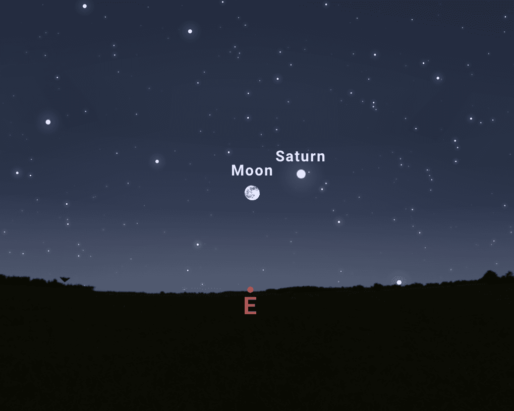 Durante la noche, Saturno se podrá observar a la derecha de la Luna, formando un atractivo dúo astronómico. Ambos astros serán visibles desde las 19:30 UTC-6 en dirección este. El planeta de los anillos brillará con una magnitud aparente de 0.64, mientras que la Luna menguante estará iluminada en un 97%.
