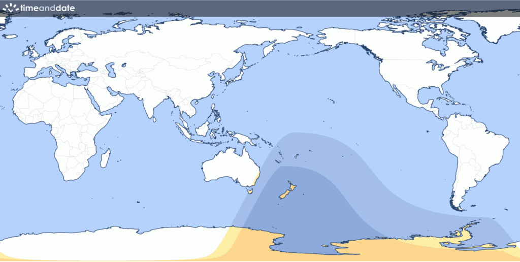 Este día tendrá lugar un eclipse solar parcial, uno de los eventos astronómicos más llamativos. El eclipse comenzará a las 17:29 UTC, alcanzará su punto máximo a las 19:41 UTC y finalizará a las 21:53 UTC. Será visible en regiones del Pacífico Sur, incluyendo Australia, Nueva Zelanda y partes de la Antártida.